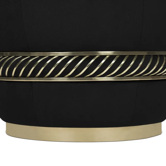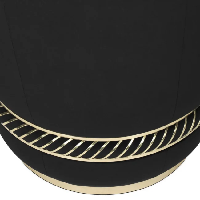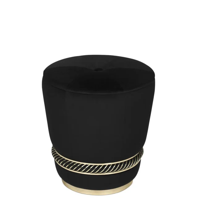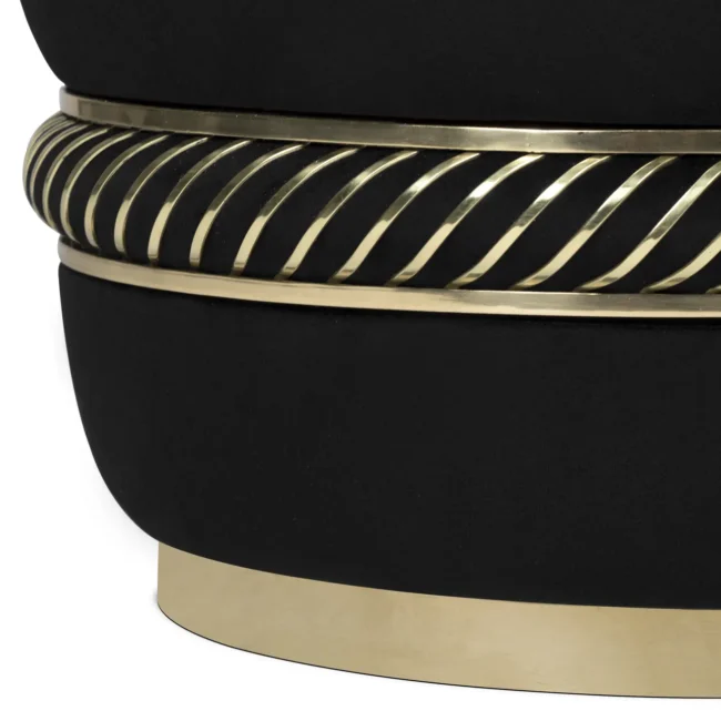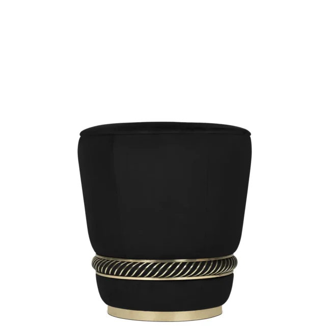 The Noir Stool exudes a unique and beautifully balanced dual personality, combining soft black velvet with a gold-plated brass ring. Its smooth curved lines and versatility make this stool a premium upholstery solution, adding elegance to luxurious spaces and suiting modern and classic settings.