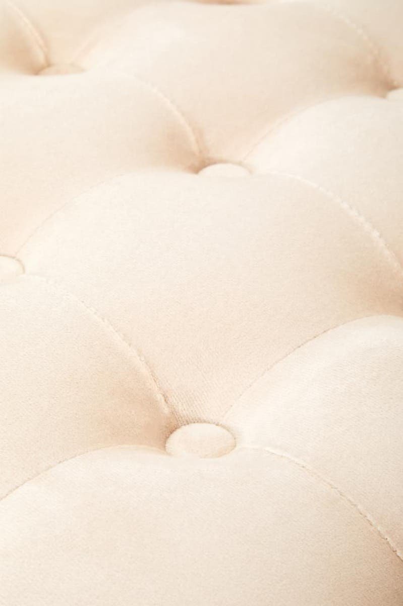 The Oriel Stone Velvet Stool With Matte Gold Finish Base exudes a luxe aesthetic with its stone velvet upholstery and matte gold finish base.