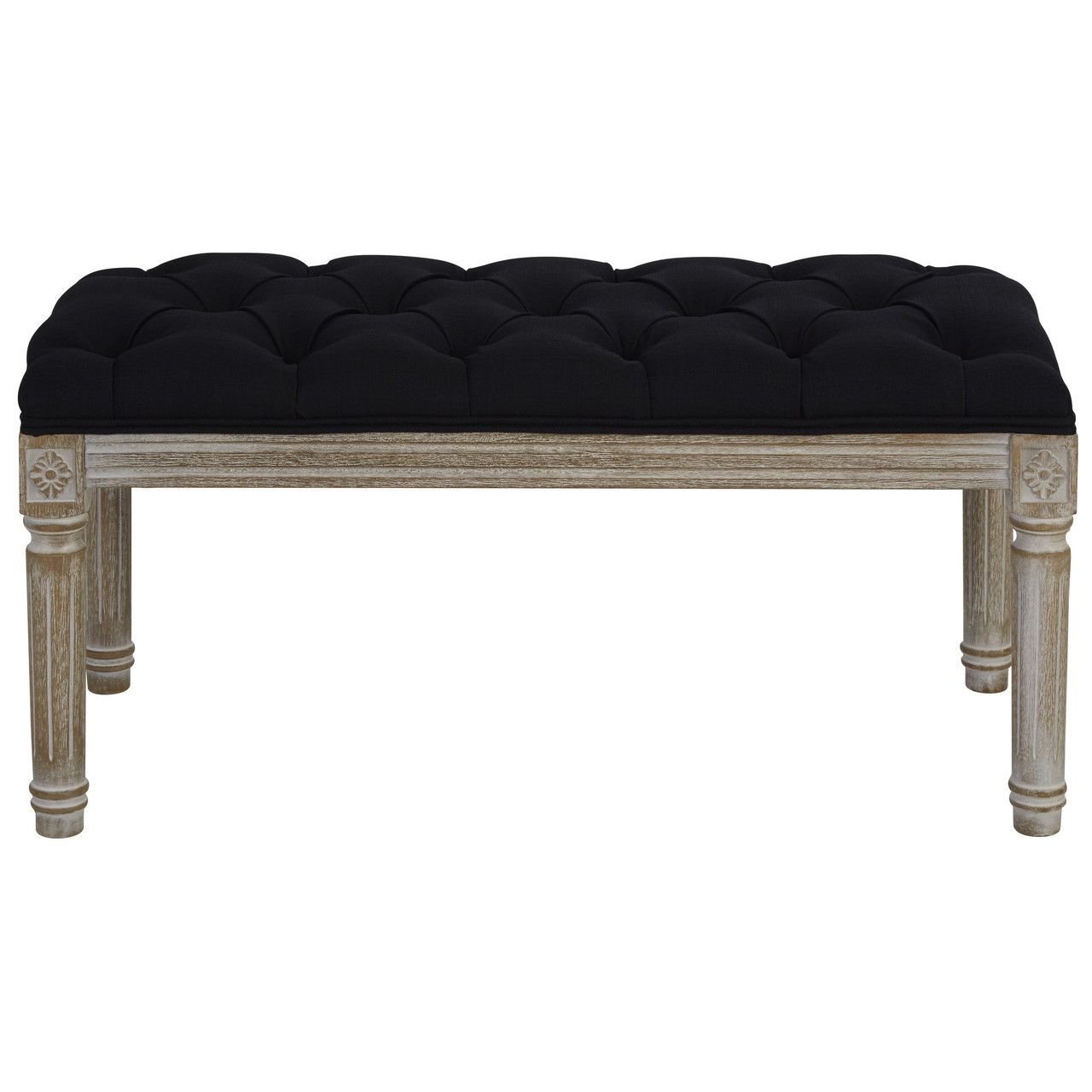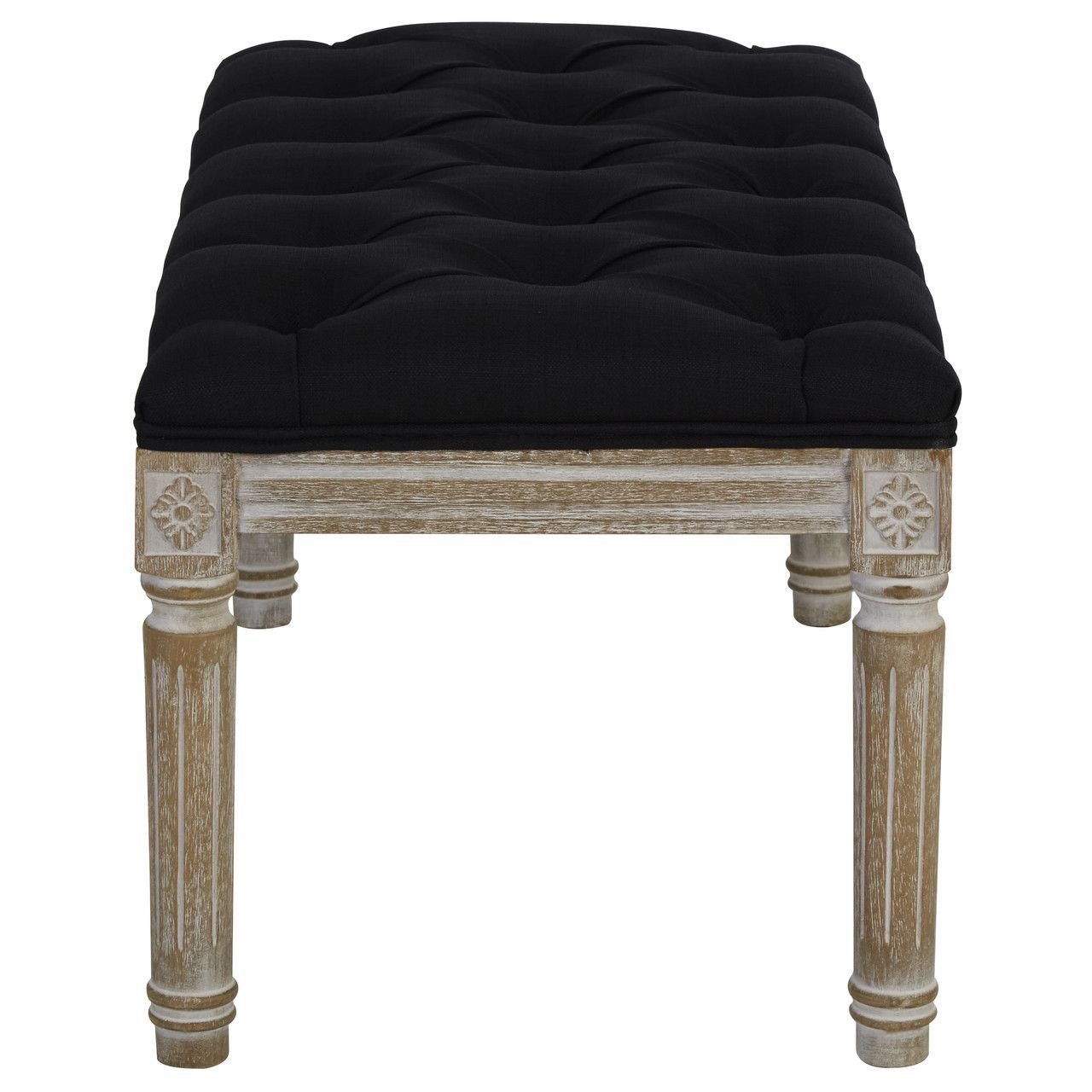 Soft black linen gently upholsters the rectangular seat of this Regents Townhouse Black Linen Bench. Diamond button detailing adds gentle tufts and texture on the seat. Sustainably sourced whitewash finish rubberwood legs complement the muted top.