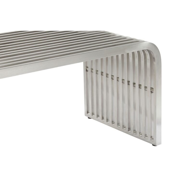 Formed into a rectangular shape, this Waver Round Edge Bench features a brushed stainless steel construction finished in a reflective silver coloured coating. The linear detailing gives it a symmetrical, aesthetically pleasing look and lends it a distinctive edge. The smoothly molded edges add to its understated industrial looks.