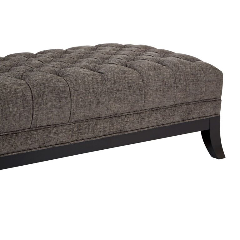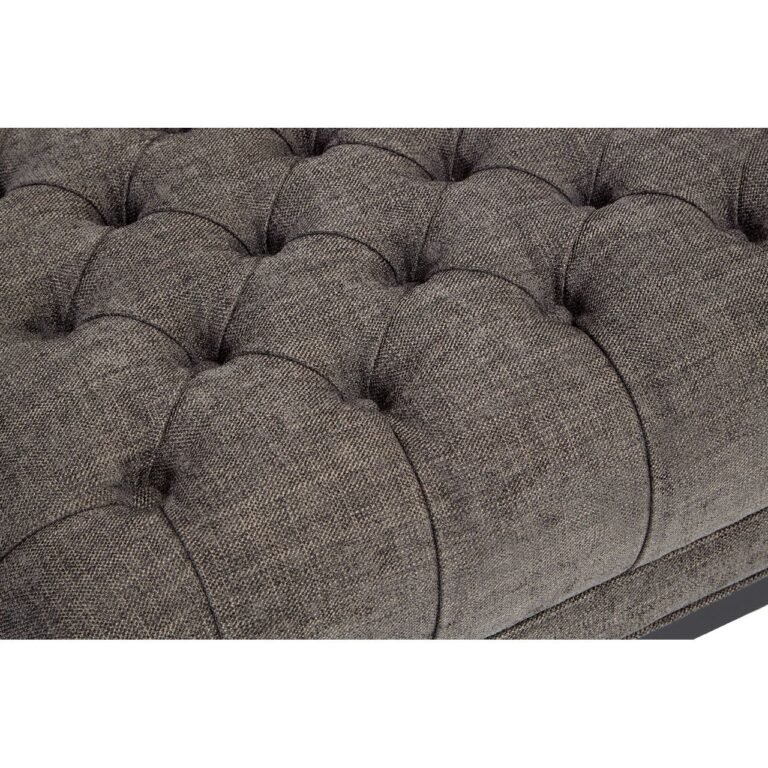 Winchester Grey Fabric Footstool: Introduce a classical accent to the living room or bedroom with the Winchester footstool. The angled legs and strong frame are crafted from natural pine wood, their smooth surface given a sleek black finish. Above this rests a thick cushion, covered in grey fabric. The cushion’s apron is textured by a line of stitching which complements the exquisite tufted and buttoned top surface.