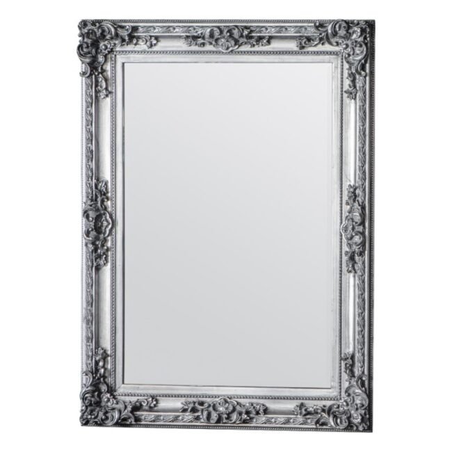 Beautiful baroque style mirror. Available in two finishes and two versatile sizes.