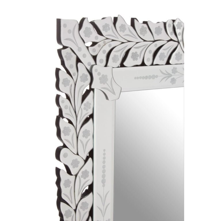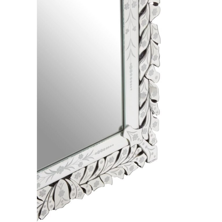The rectangular Arcelie Wall Mirror features a stylish reflective frame with individual segments displayed together to create an organic leaf motif. Intricate floral detailing on both the inner and outer frame adds a decorative touch, while cutout mirrored floral motifs add a sense of depth.