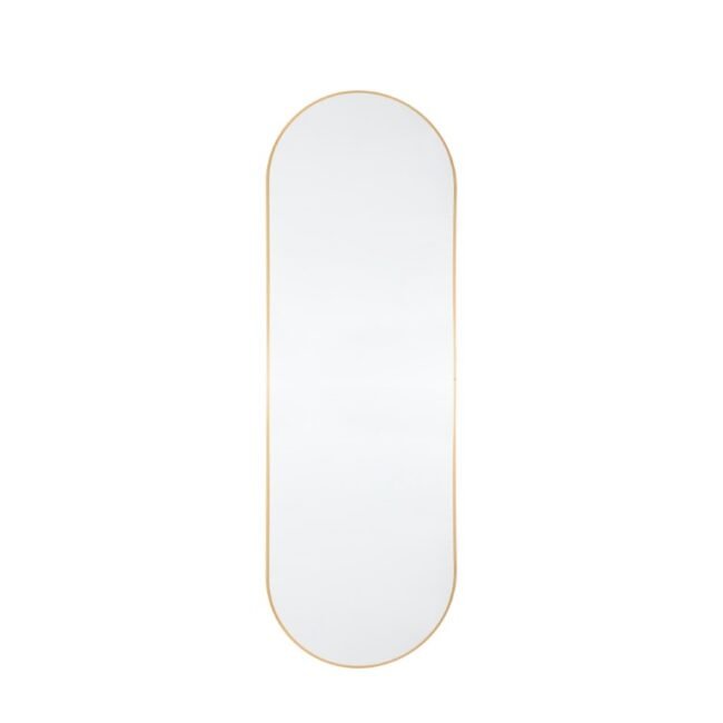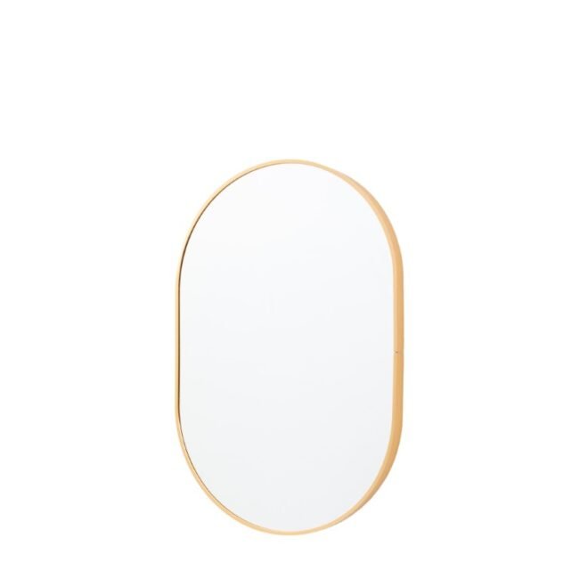 With friendly rounded shapes this mirror set in a simple gold frame adds some clean modern lines to your wall. Available is 2 sizes.