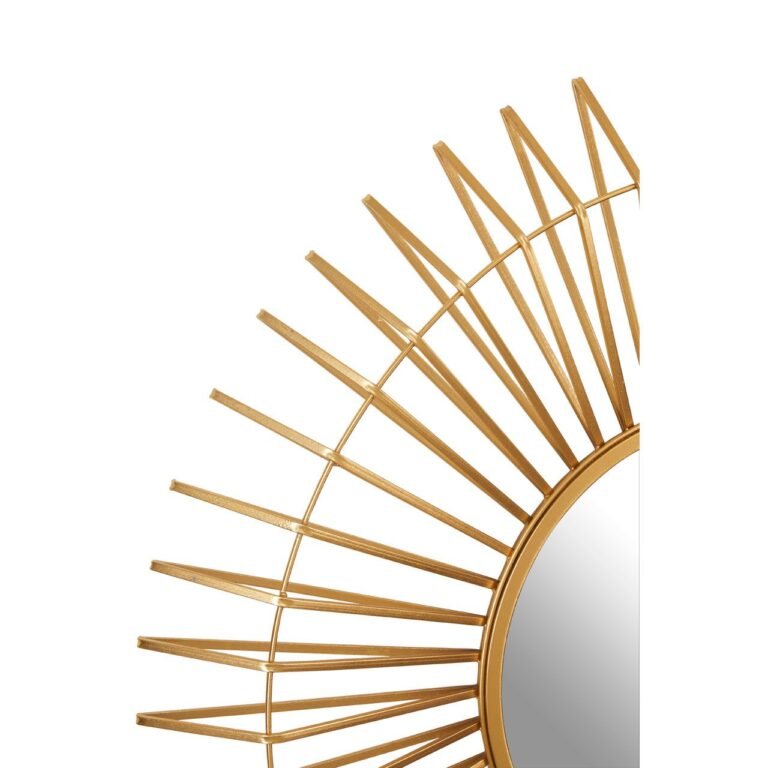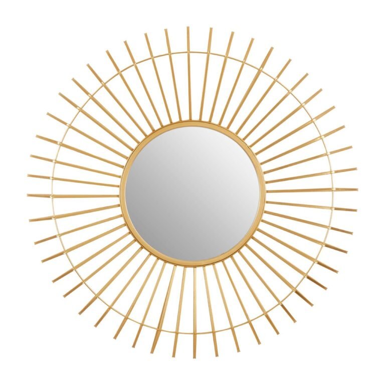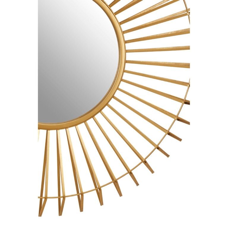 The Aullie Round Wall Mirror features a sunburst design frame that is intricately formed from metal wires. The beveled sides of the mirror lend it some depth while sleek, warm metallic finish creates a luxury appeal. Decorative and functional, this wall mirror is a distinctive statement piece to style in the bedroom or living room.