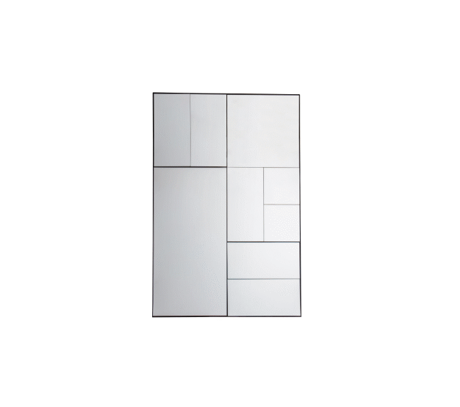 Create a modern industrial vibe in your living space with this striking mirror. Featuring a contemporary multi glass grid panel design, and distressed detailing the mirror is finished with a slim black metal frame.