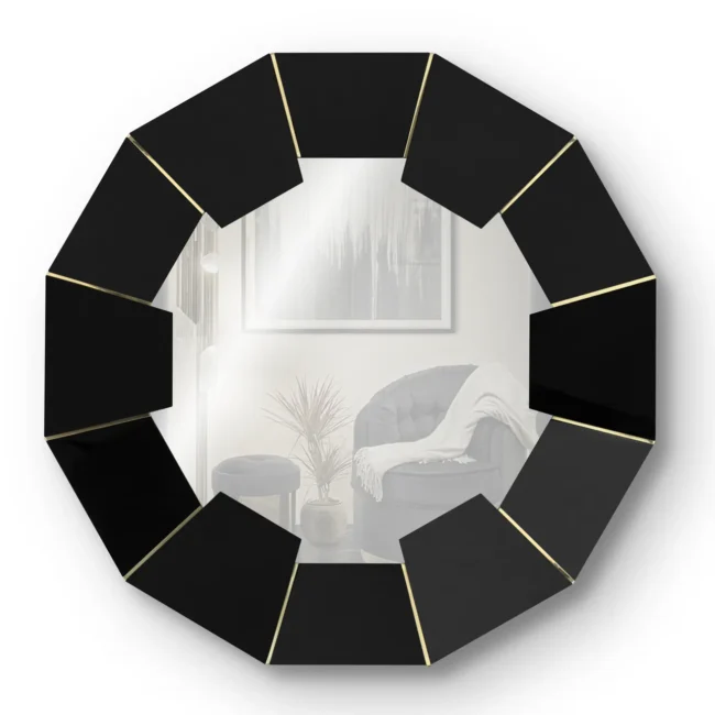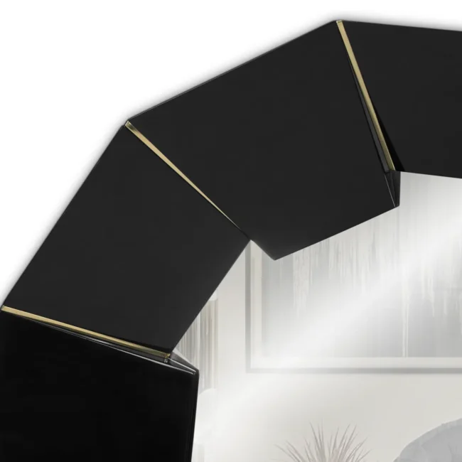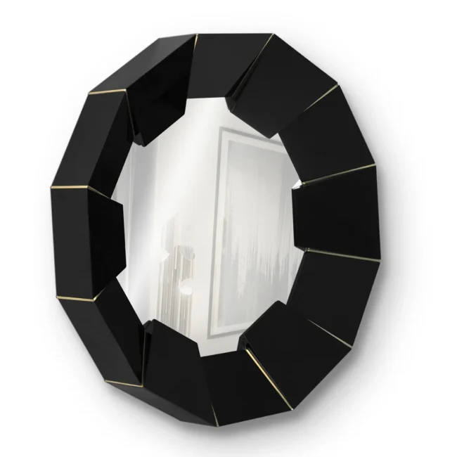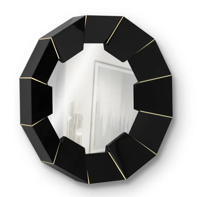Combining decorative appeal, practical design, and an unmistakable allure, the Darian Mirror is a divine addition to any interior design project. Its perfect harmony of black lacquer and brass materials creates a modern round mirror that captures both the functionality of a mirror and the splendor of an art piece.