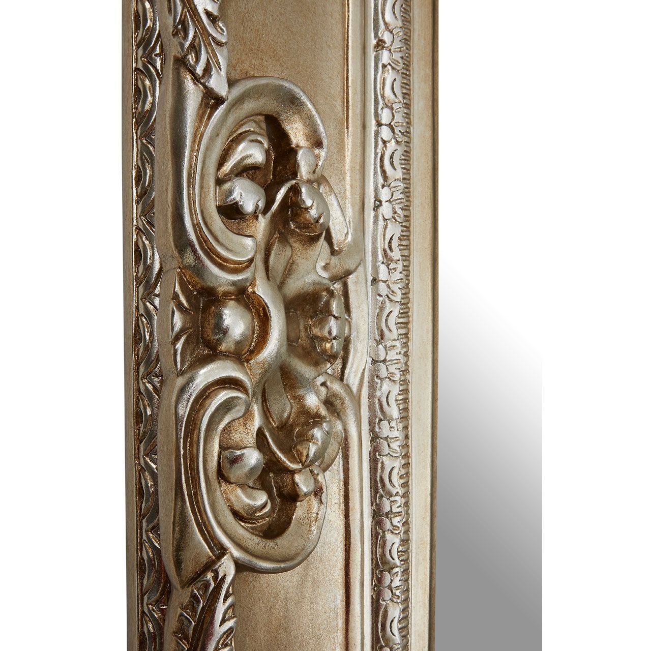 This Elik Metallic Foliage Wall Mirror thick frame is replete with carved foliage motifs and intricate dentil detailing. Their symmetrical arrangement combines with the champagne gold finish to lend an antique look to the mirror. Capable of being displayed landscape or portrait, style with warm metallic finished lighting and furniture.