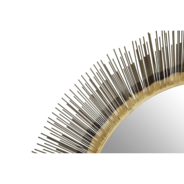 The frame of the Foxley Brass Finish Iron Wall Mirror is made from iron and has a warm brass finish. An array of iron rods emerge from the brass, creating a metallic flourish around the circular mirror. Their different lengths enhance the visual impact of this distinctive accent piece. Coordinate it with metallic accessories in the living room or hallway.