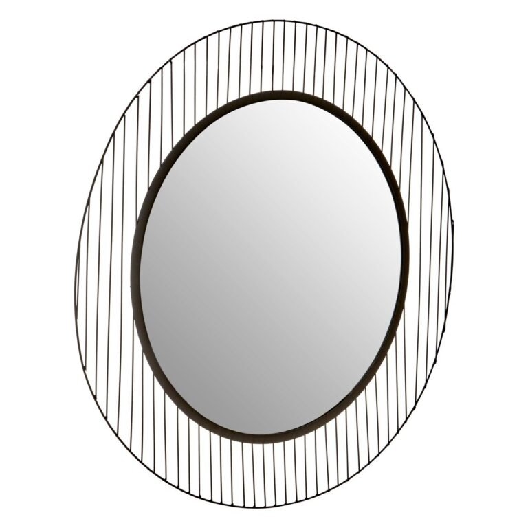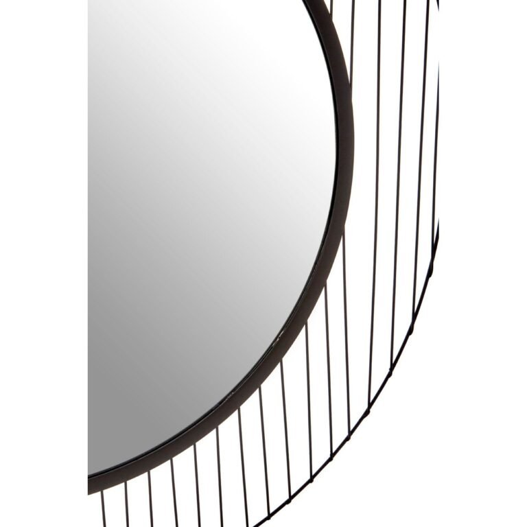 Sleek black finish metal wires combine to form the linear pattern circular frame of this Mossley Linear Lines Frame Wall Mirror. The contemporary frame features a slim inner rim which creates a monochromatic contrast with the reflective mirrored surface. The mirror’s openwork design and vertical lines contribute to its symmetrical construction.