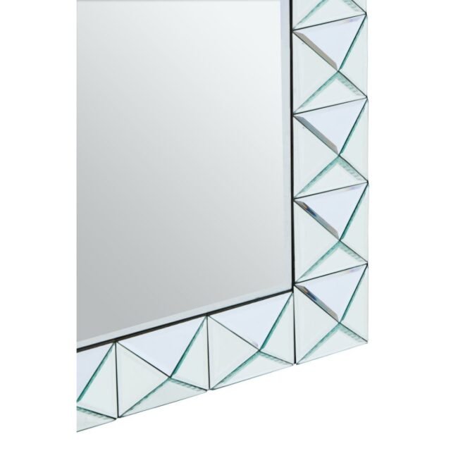 “This rectangular wall mirror has a mirrored pyramid edged frame, which creates dimensional interest. This decorative wall mirror is a versatile choice to incorporate into a variety of interior styles.”