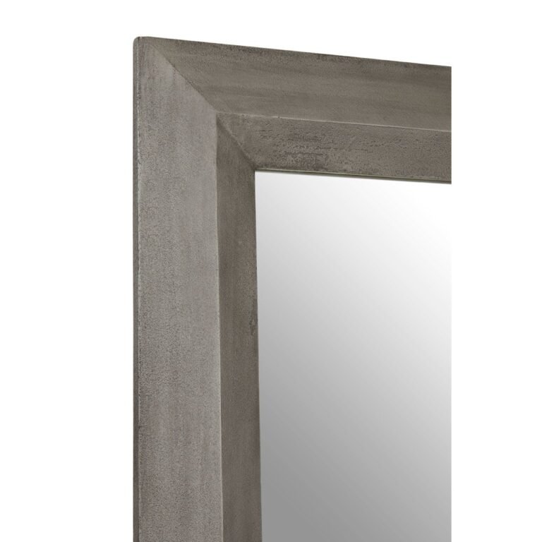 The frame of the Poma Floorstanding Mirror is dressed in textured concrete and has an antique silver finish that complements reflective metallic. It features beveled corners and a a layered design, adding depth to its look. Standing at almost two meters tall, it has real presence, but the muted colour scheme ensures that it does not dominate its surroundings.