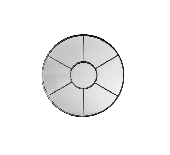 A lovely round window-style mirror in a black finish. Also available in a soft white finish.