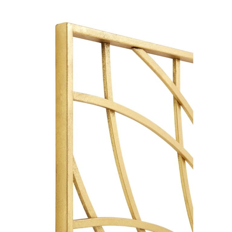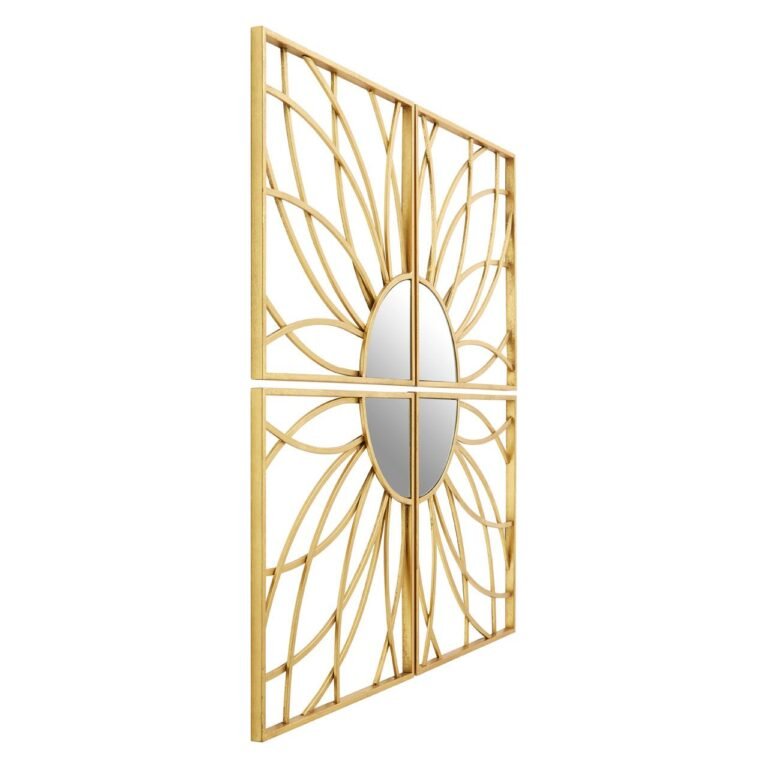 The Tarume Petals Mirror’s frame is arranged over four segments, with curving, intersecting lines that form petal shapes. It’s made from iron, and has a luxurious champagne gold finish.