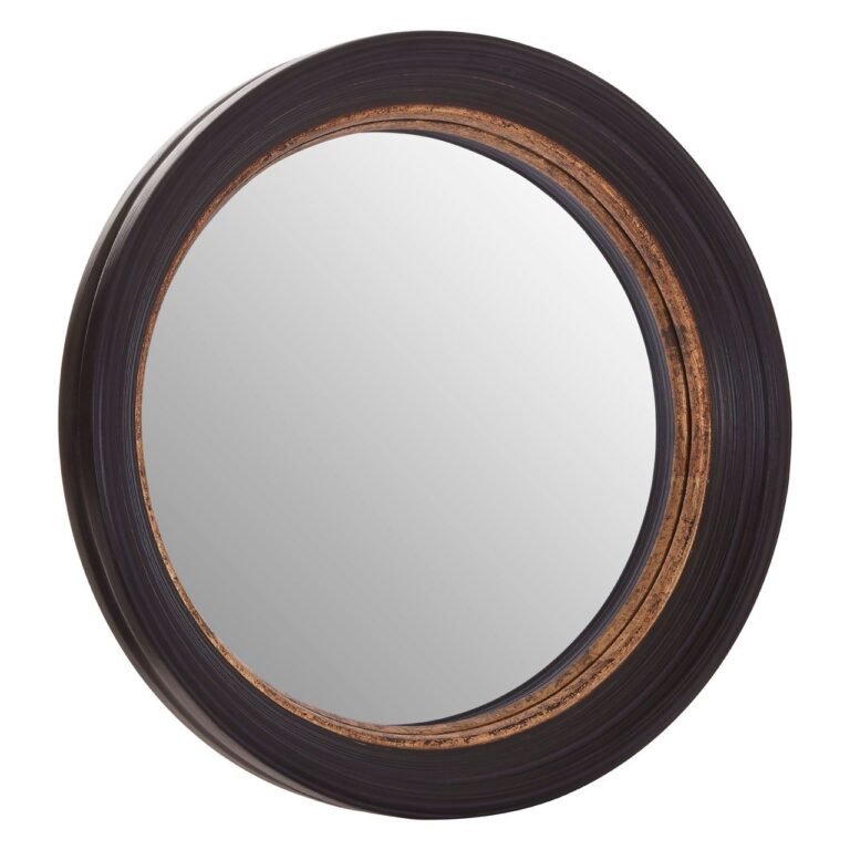 Wentil Wall Mirror has a series of lines are carved into the circular frame to create an eye-catching concentric pattern. Crafted from natural wood, its black colour is offset by the thin line of weathered gold that skims the edge of the reflective surface. Its rich colour palette makes it suitable for coordinating with dark metal decorative accessories.
