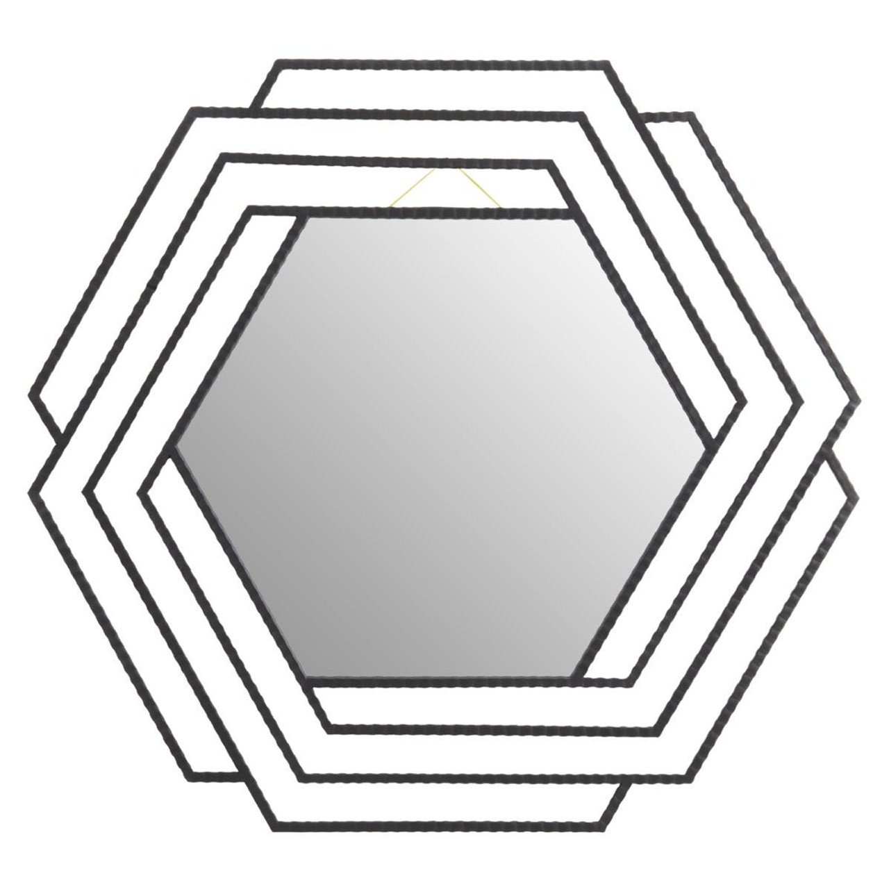 Aulie Black Finish Hexagonal Wall Mirror: The Aulie hexagonal wall mirror has a sturdy metal frame in a sleek black finish.