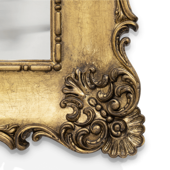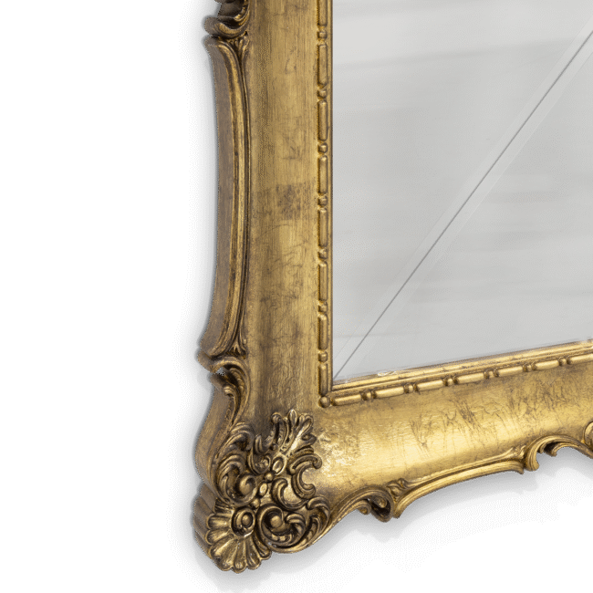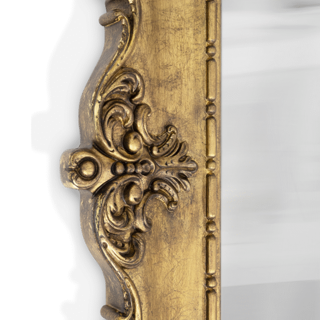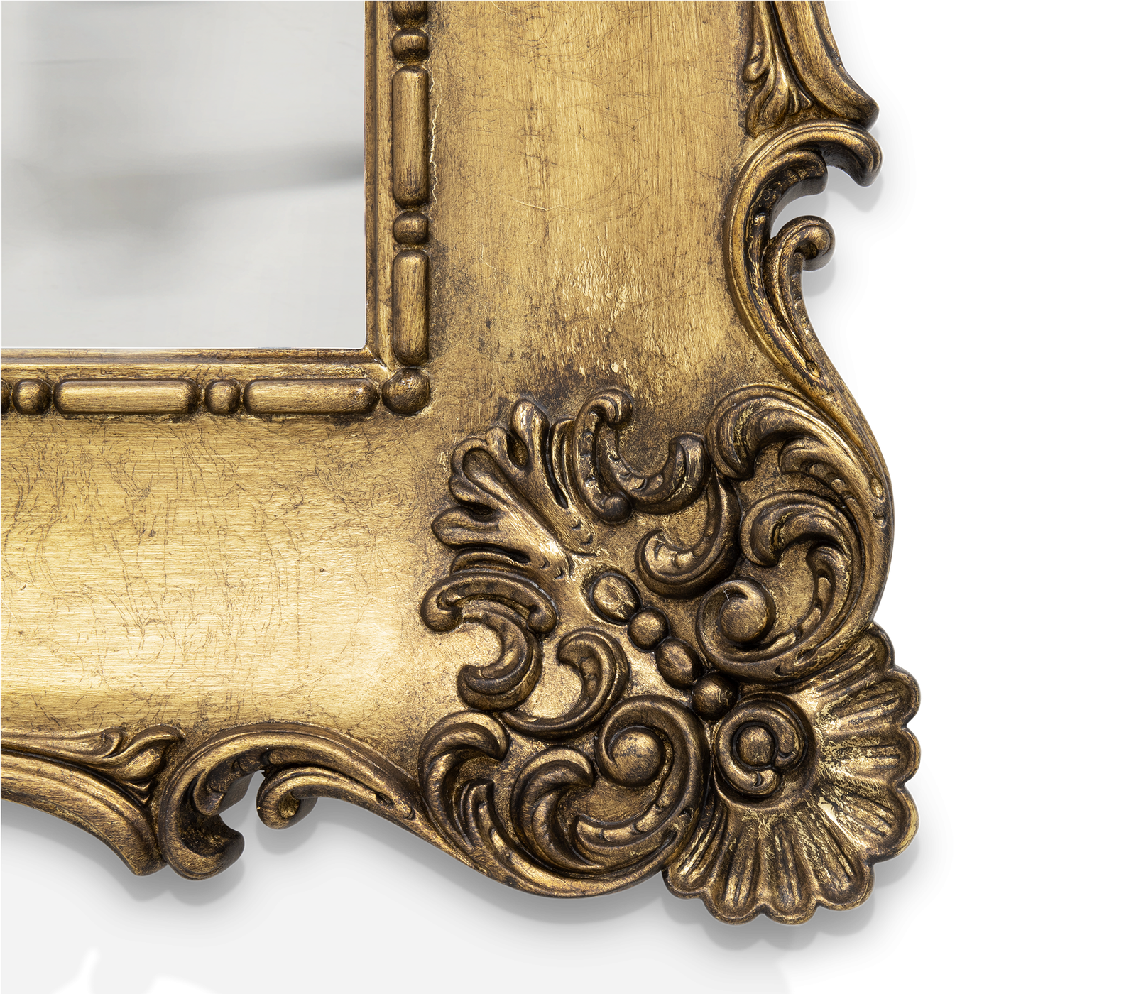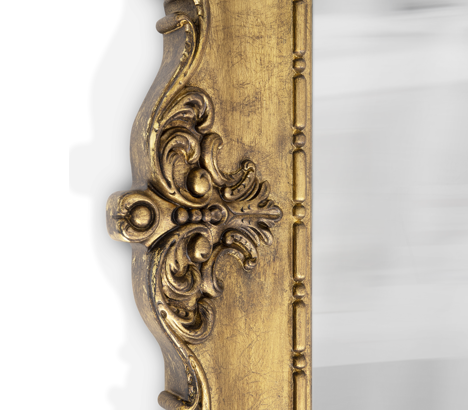 An imposing antique gold mirror that challenges the history and cherishes it at the same time, born to be a must-have in any luxury room.