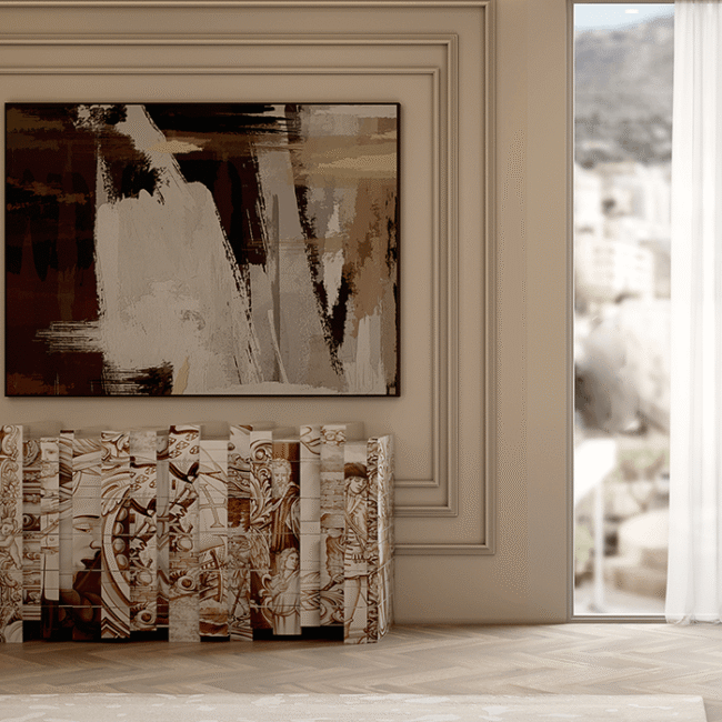 Jay screen is an enigmatic piece with a beautiful pattern capable of defining an interior. This handcrafted folding screen is made with wooden panels; the four panels can be folded away for easy storage. It is an exquisite piece that adds artistic beauty to any home decor. Jay folding screen is available in oak, beech tree or mahogany wood. Each one is lacquered and available in two colors (white or black).