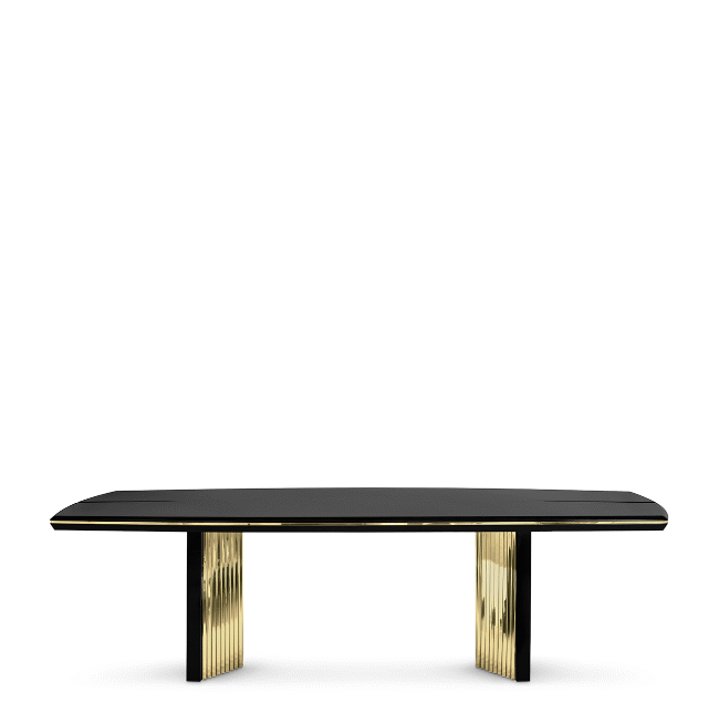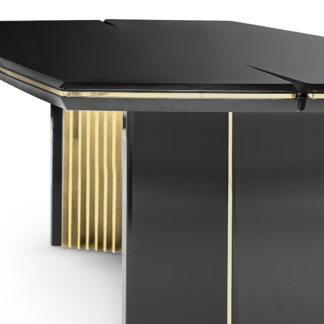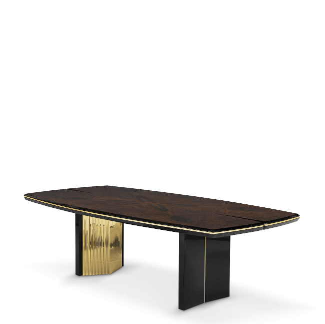 The Beyond Dining Table features distinctive details that delicately combine hand-worked wood with touches of polished brass, creating a warm and golden tone on its polished surface. Created during a moment of inspiration, this modern luxury dining table serves as the perfect focal point for any dining setting.MATERIALS