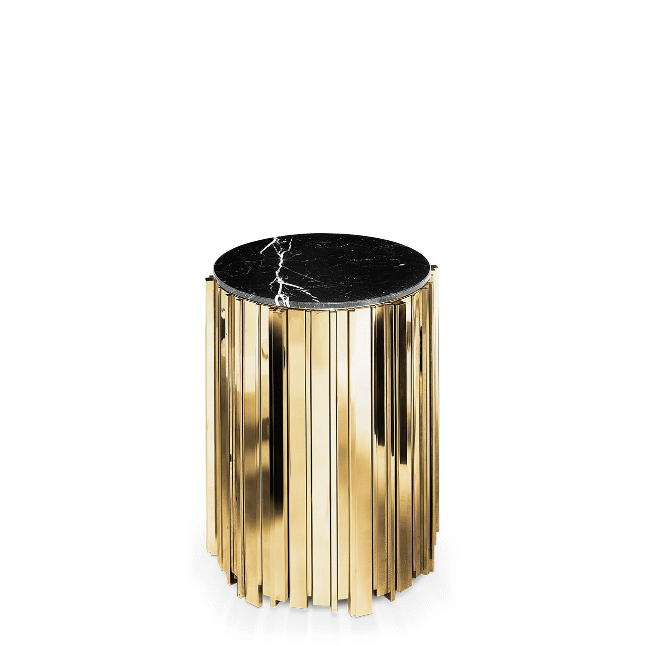 Made with the highest-quality brass and Nero Marquina marble, the Empire Big Side Table lives up to its iconic collection. Its a versatile item that gives a sophisticated ambiance to any setting, from the living room to an entrance or a bedroom.MATERIALS