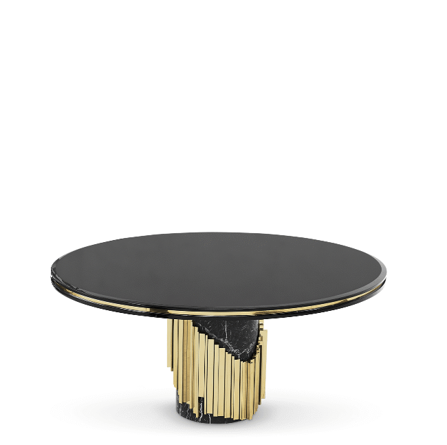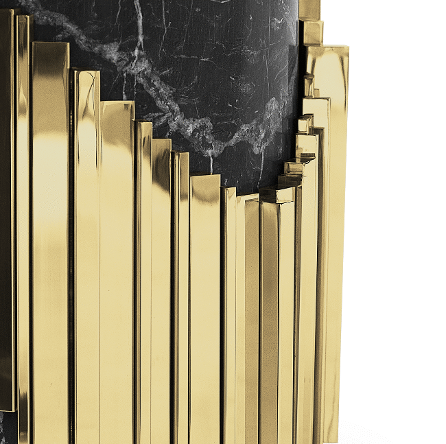 The Littus Dining Table embodies a unique concept, symbolizing the elegance of spirals. Crafted with precision and quality, this luxury table features Nero Marquina marble and polished brass, showcasing exceptional craftsmanship and design. It becomes the focal point where great decisions are made and determined minds gather.MATERIALS