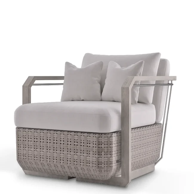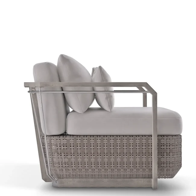 TECHNICAL DETAILS Body: Wood, Stainless Steel, Polyrope & Fabric Finishes: Grey Wood, Polished Stainless Steel, Polyrope Anthracite & Silver Fabric; Weaving & Fabric Finishes: Vintage Wood, Polished Stainless Steel, Weaving Seashell & Nata Fabric