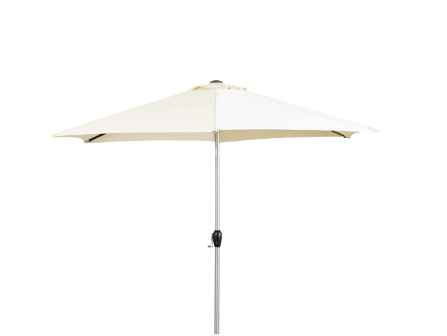 This 2.7m Parasol features a tilt and crank mechanism, for easy adjustment of the parasol. The lovely cream shade offers a subtle neutral colour to suit a any garden. The frame is aluminium. A base is available for use with the parasol.