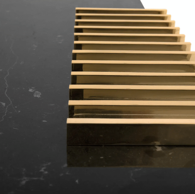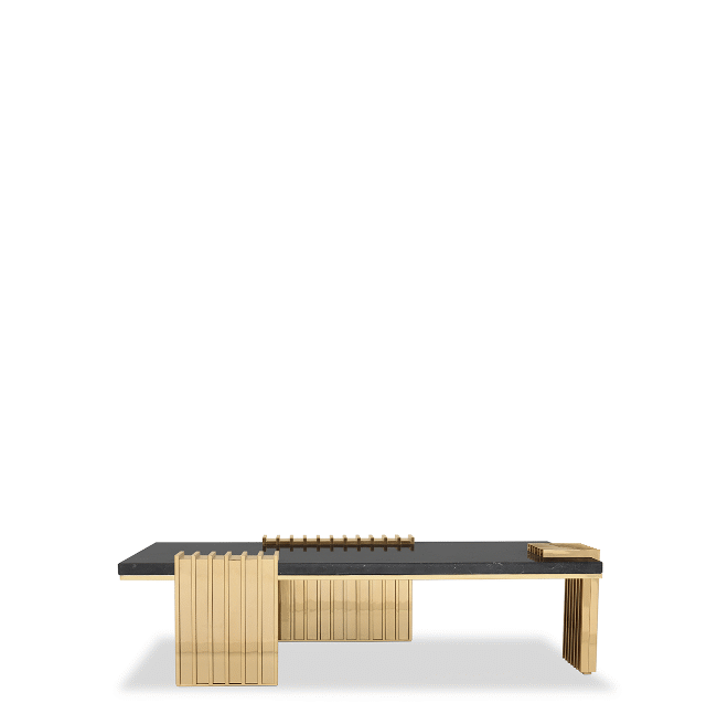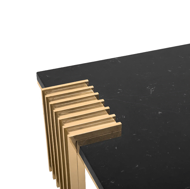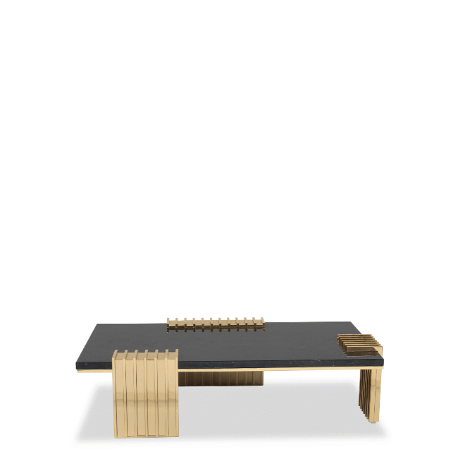 The Vertigo Center Table was made with a sleek design, giving it a classy feel and a luxurious appeal. The unusual forms in gold-plated brass involve the Nero Marquina marble, creating a captivating centerpiece that enhances the ambiance of any living room.MATERIALS